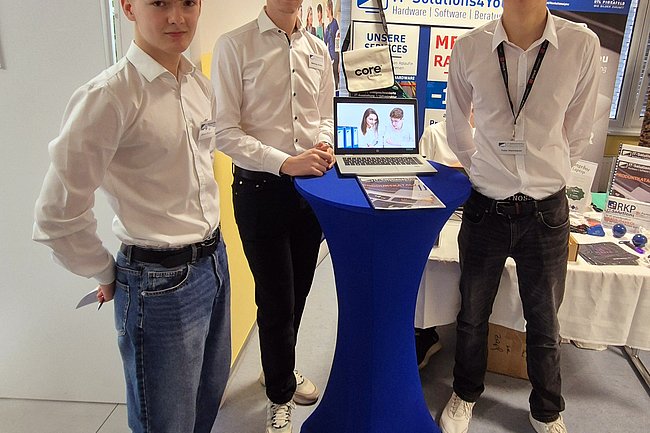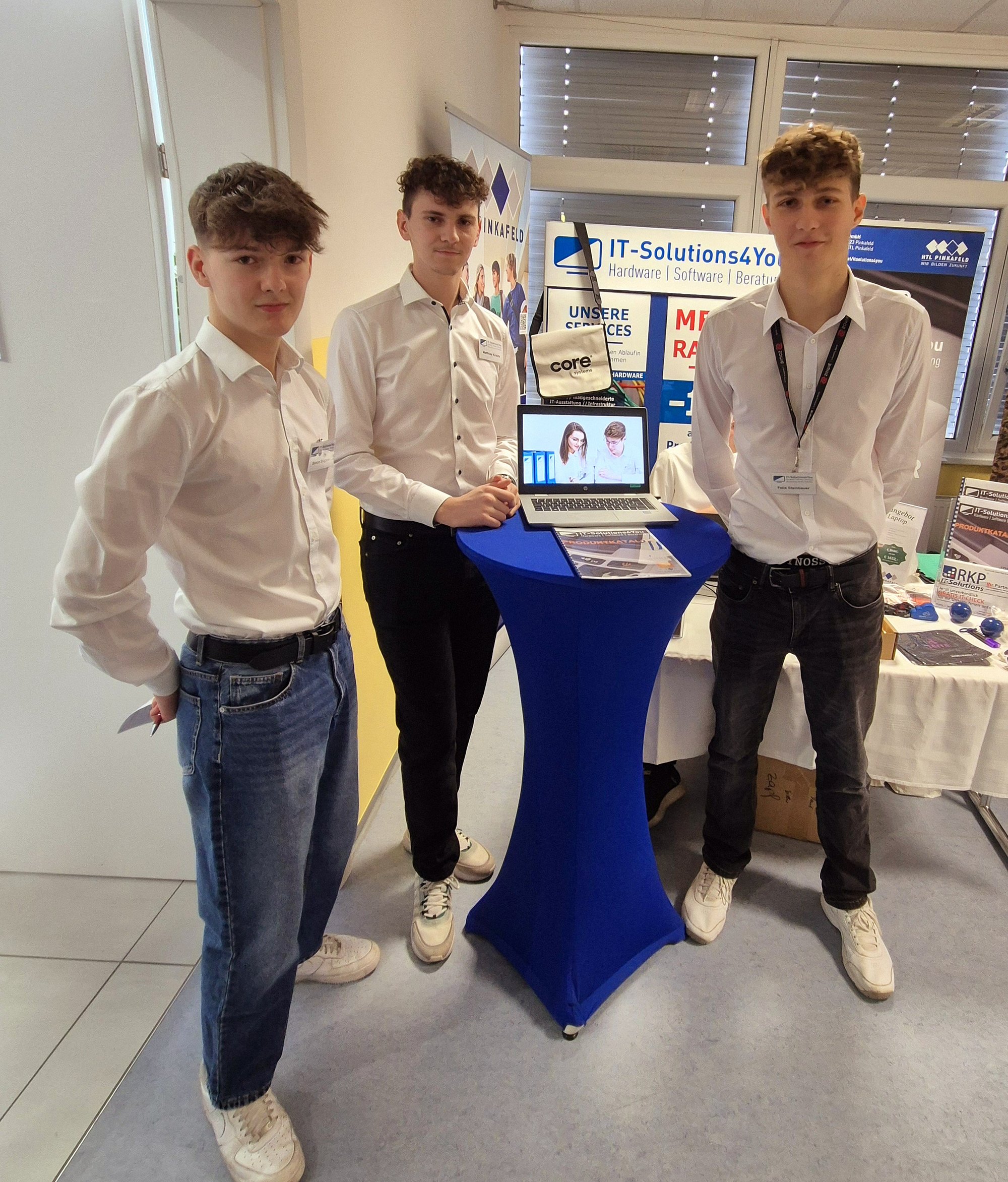 Die 13 Schülerinnen und Schüler der IT-Solutions4You GmbH, mit den Betreuungslehrern Prof. Silke Zapfel und Prof. Heinz Bundschuh, präsentierten ihre Produkte aus dem Hard- und Softwarebereich und konnten zahlreiche Verkäufe tätigen. Und so wie es in der Wirtschaft üblich ist, wurde diese Veranstaltung auch zum Netzwerken und Kennenlernen von Geschäftspartnern genutzt.