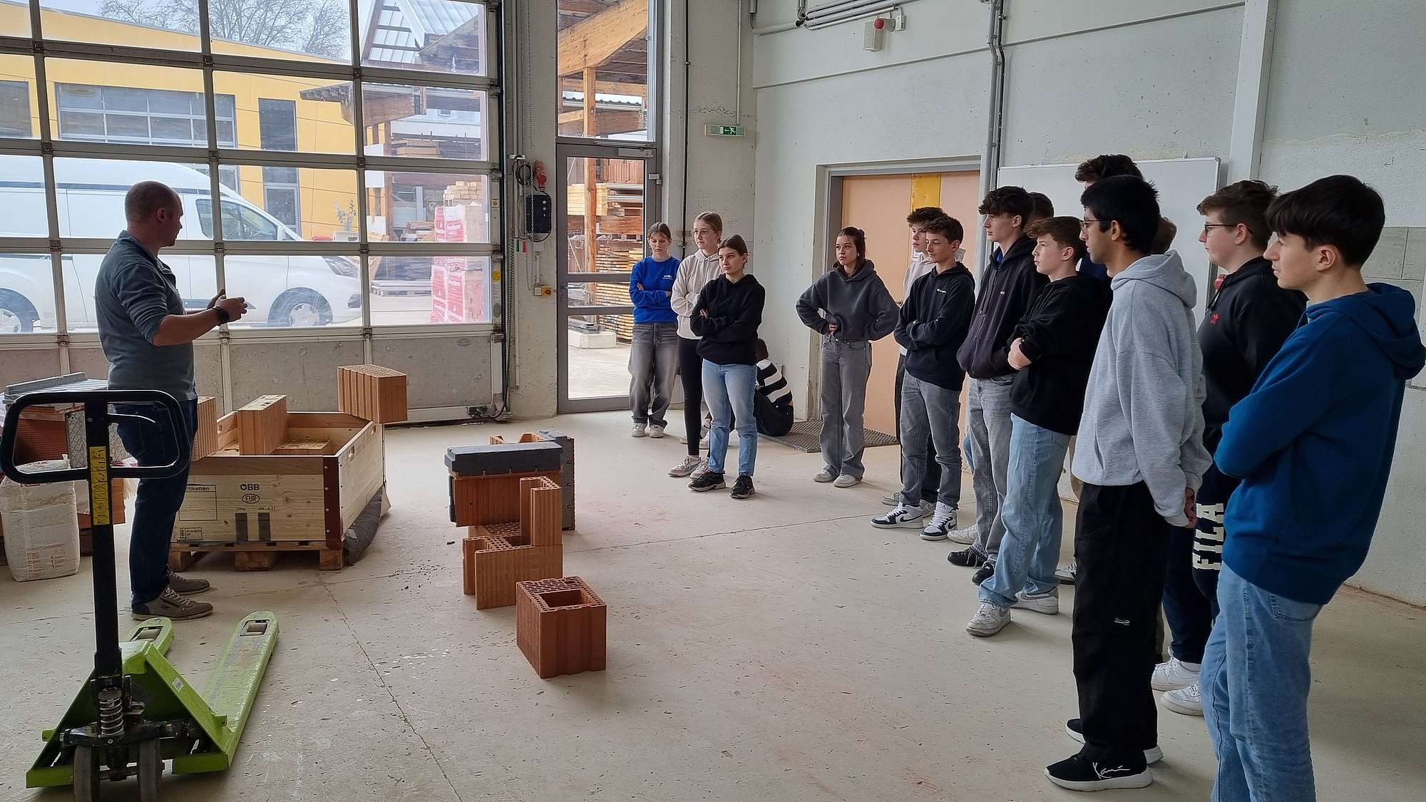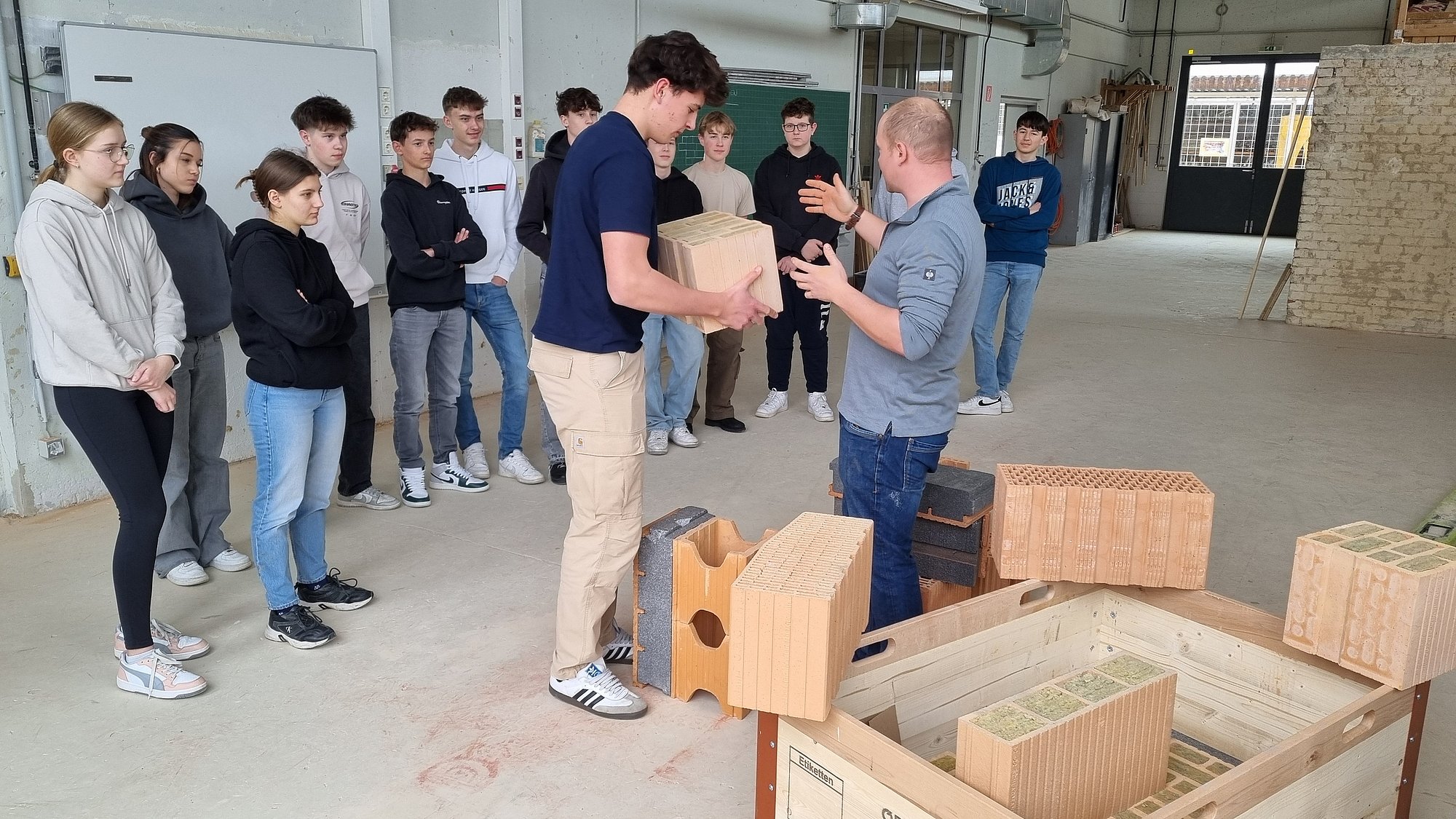 Herr Johann Diewald von der Firma Wienerberger kam an die Schule und brachte, in jeweils zwei Halbtagen pro Gruppe, den Schüler*innen des zweiten Jahrgangs der Höhere Abteilung für Bautechnik die statischen und physikalischen Eigenschaften von Produkten aus gebranntem Ton und die Verarbeitung von Planziegeln näher.