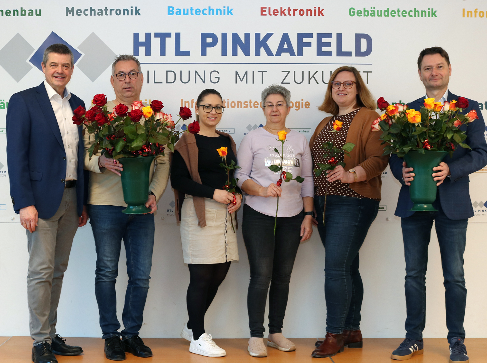 Anlässlich des Weltfrauentags am 8. März überreichten die Personalvertretungen der Lehrenden und des Verwaltungspersonals gemeinsam mit Dir. Wilfried Lercher Blumen und Pralinen an die rund 60 weiblichen Beschäftigten der HTL Pinkafeld.
