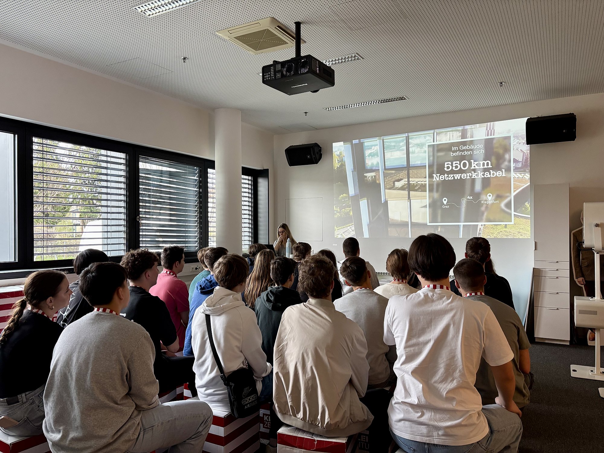 Zuerst stand ein Besuch des modernen Styria Media Centers am Programm, wo die Schüler/innen eine Führung durch die Redaktion der Kleinen Zeitung erwartete. Im Laufe des Vormittags erhielt die Gruppe einen Einblick in die Arbeit von Journalist/innen, gestaltete selbst ein digitales Titelblatt und durfte abschließend einen Blick in den 3000 m2 großen Newsroom werfen. Auch die Relevanz von Journalismus in der Demokratie und die Gefahr von Fake News wurden diskutiert, bevor schließlich Erinnerungsfotos in der hauseigenen Fotobox gemacht werden durften.