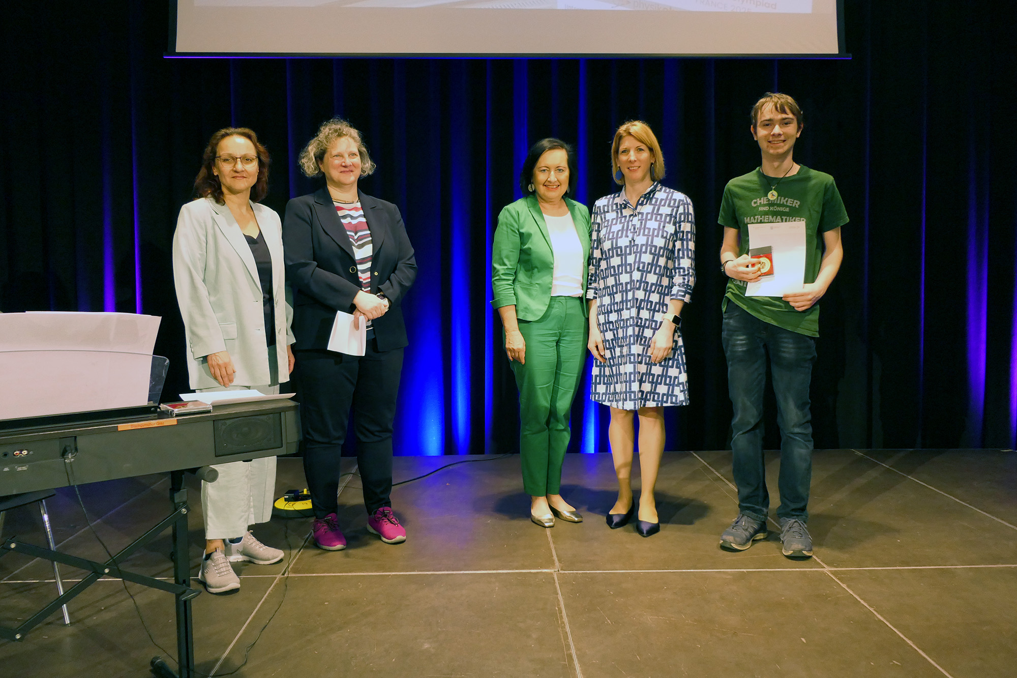 Jetzt konnte Simon auch beim Bundeswettbewerb der Österreichischen Physikolympiade mit 28 Teilnehmenden den hervorragenden zweiten Platz erringen. In einem intensiven fünfstündigen Wettbewerb mussten die Teilnehmerinnen und Teilnehmer knifflige physikalische Aufgaben lösen, die ihre Grenzen herausforderten. Die Aufgaben befassten sich mit den Themen Winkelsensoren, Schwingung von gekoppelten Massen und einer mechanischen Uhr, Sonolumineszenz und einige Fragen zur Optik, z.B. zum Diamantschliff oder einem Haifischbecken.