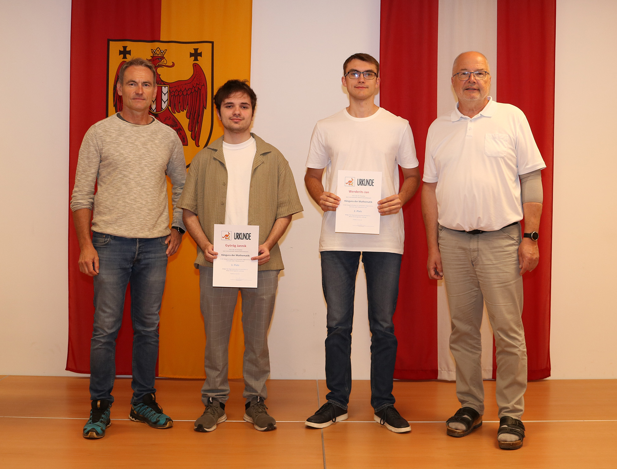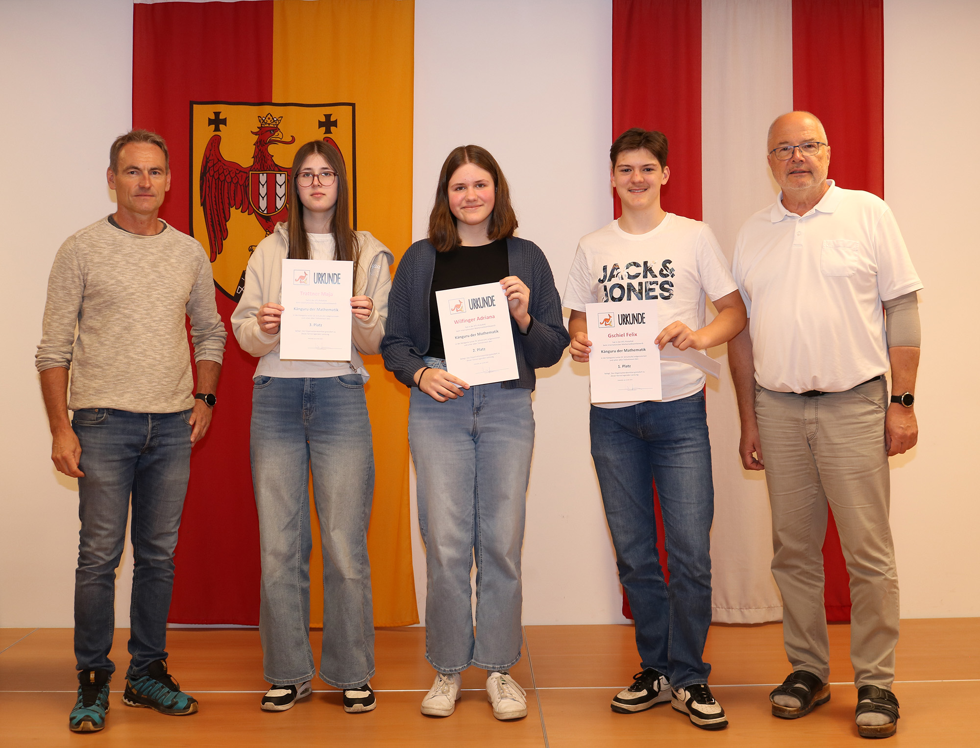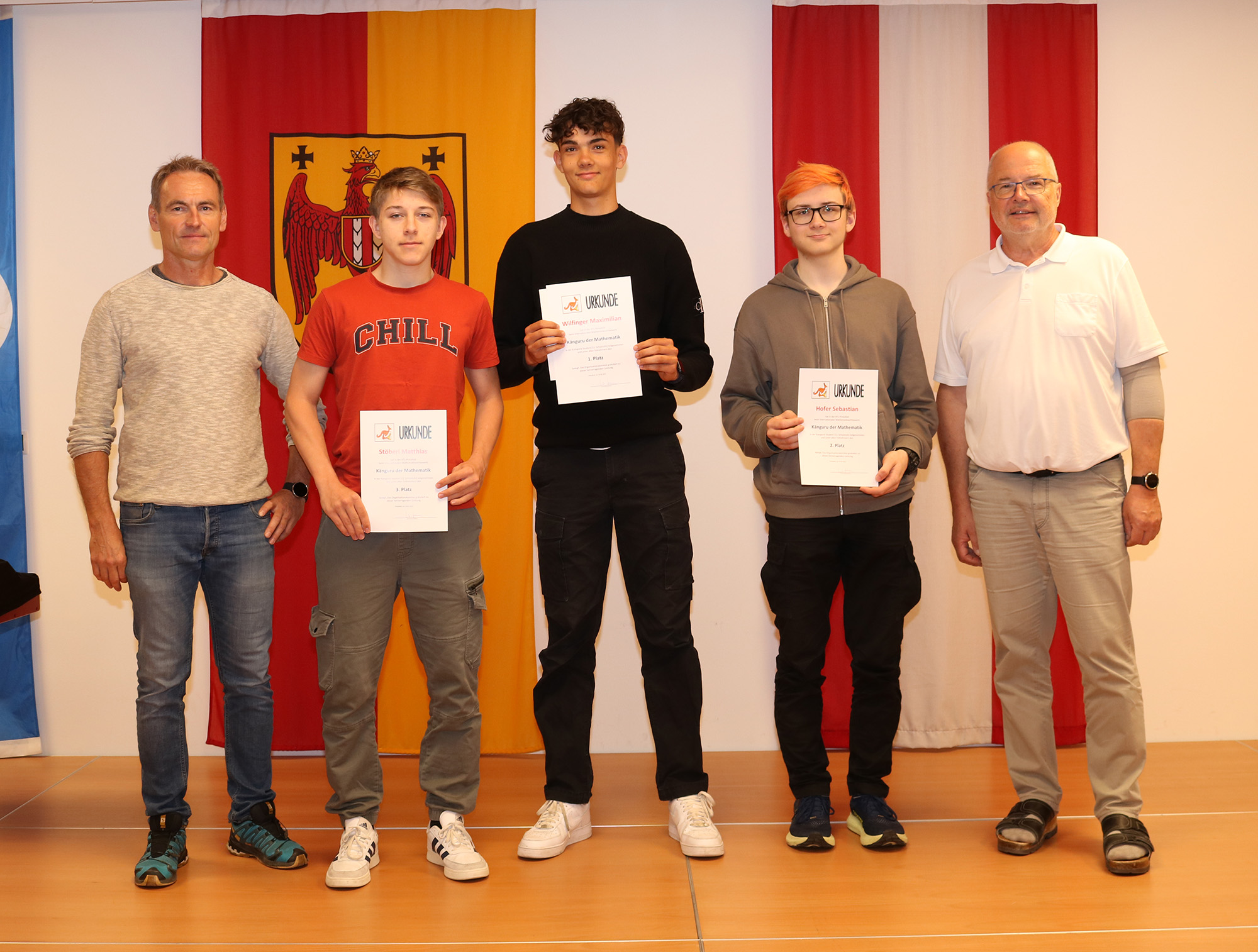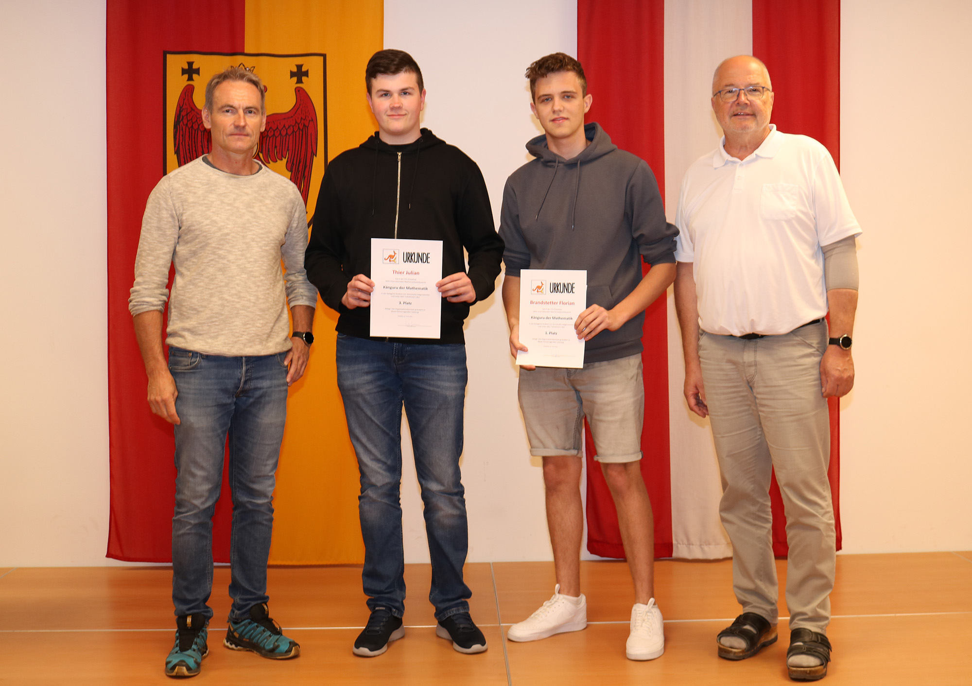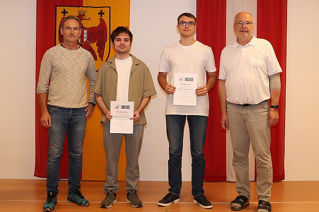 Kürzlich wurden die Besten in den einzelnen Schulstufen von Abteilungsvorstand Karlheinz Oswald und OStR Pertl mit Urkunden und Geschenken für ihre hervorragenden Leistungen geehrt, wobei Felix Gschiel und Samuel Massing auch den ersten Platz im Burgenland erzielen konnten.