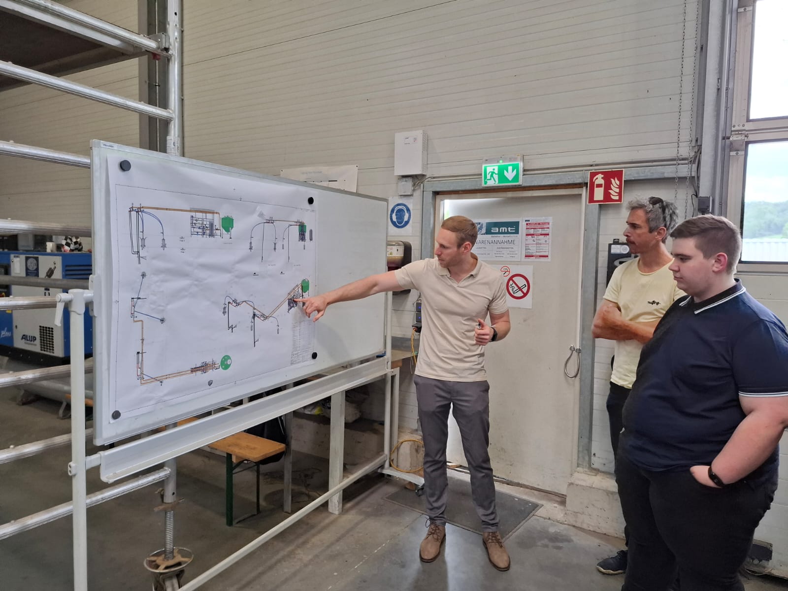 Ende Mai unternahm die 3. Klasse der Fachschule für Maschinen- und Anlagentechnik im Rahmen einer ganztägigen Exkursion einen Besuch bei zwei langjährigen Partnerunternehmen der Abteilung Gebäudetechnik. Beide Betriebe beschäftigen Absolventinnen und Absolventen unserer Schule und stehen in engem Austausch mit der Fachabteilung.