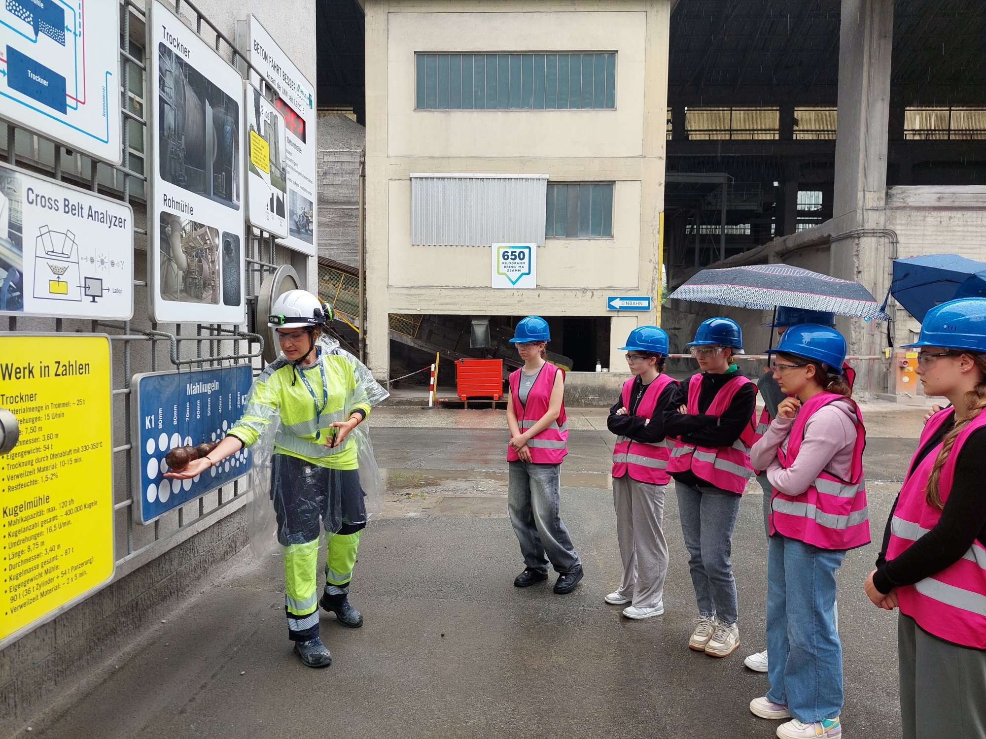 Bei einem Rundgang durch das Werk konnten die Schüler:innen hautnah erleben, wie aus Kalkstein, Mergel und weiteren Rohstoffen hochwertiger Zement entsteht. Besonders beeindruckend war der gewaltige Drehrohrofen und das moderne Labor, in dem laufend Qualitätskontrollen durchgeführt werden.