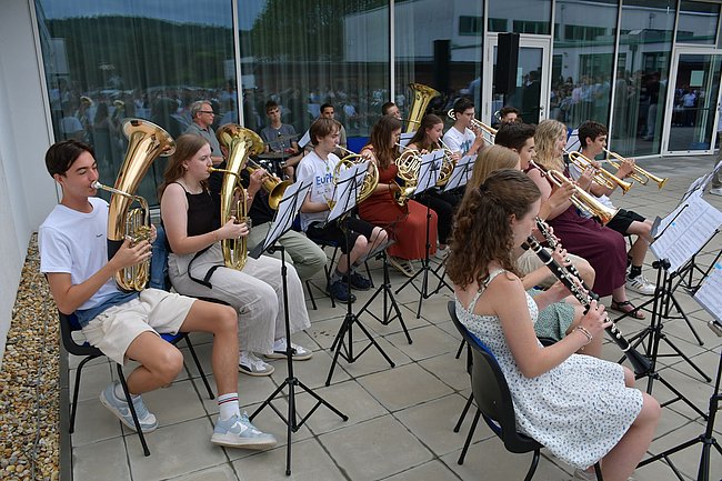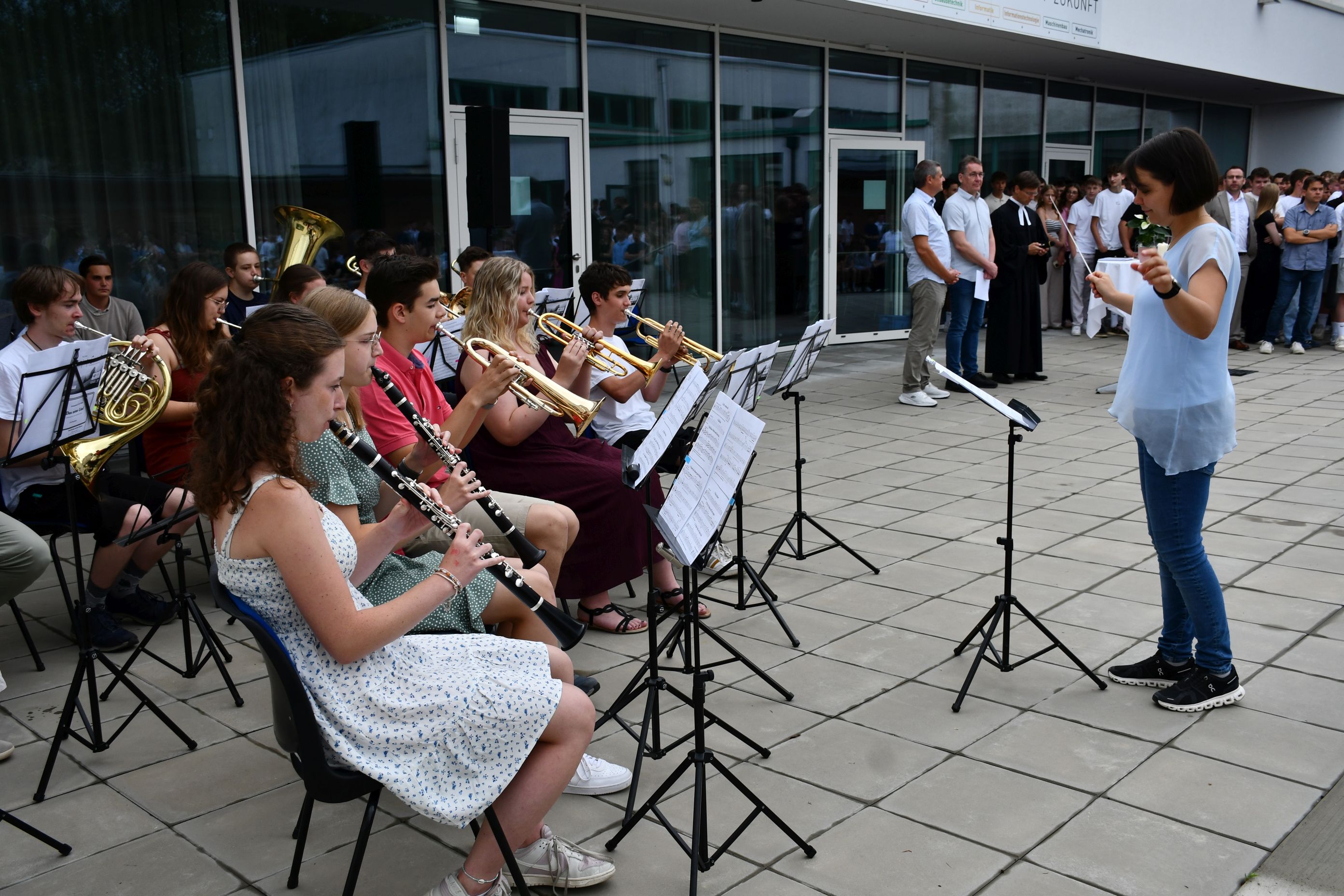 Direktor Wilfried Lercher dankte den musizierenden Schülerinnen und Schülern der HTL-Brassband für ihre Unterstützung bei der Gestaltung der Schulabschlussfeier. Er forderte die Gottesdienstteilnehmerinnen und -teilnehmer auf, so wie die Musikerinnen und Musiker das zu tun, was Freude bereitet und wünschte den Schülerinnen und Schülern sowie den Lehrerinnen und Lehrern schöne und erholsame Ferien.