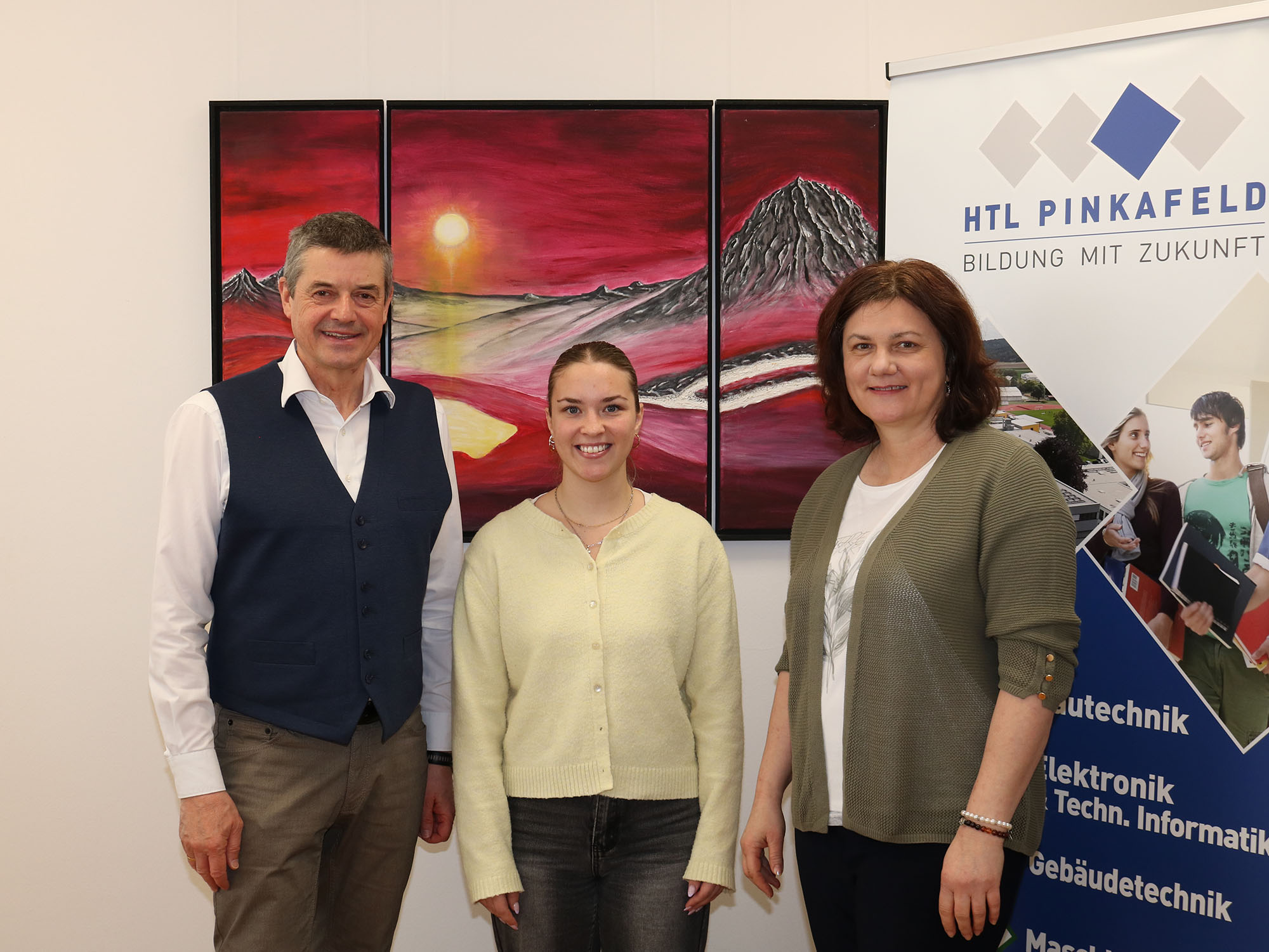 Betreuerin Prof. Evelin Weber-Kröpfl und Direktor Wilfried Lercher evaluierten zum Abschluss gemeinsam mit ihr die dabei gemachten Erfahrungen und wünschten ihr einen weiteren erfolgreichen Studienverlauf.