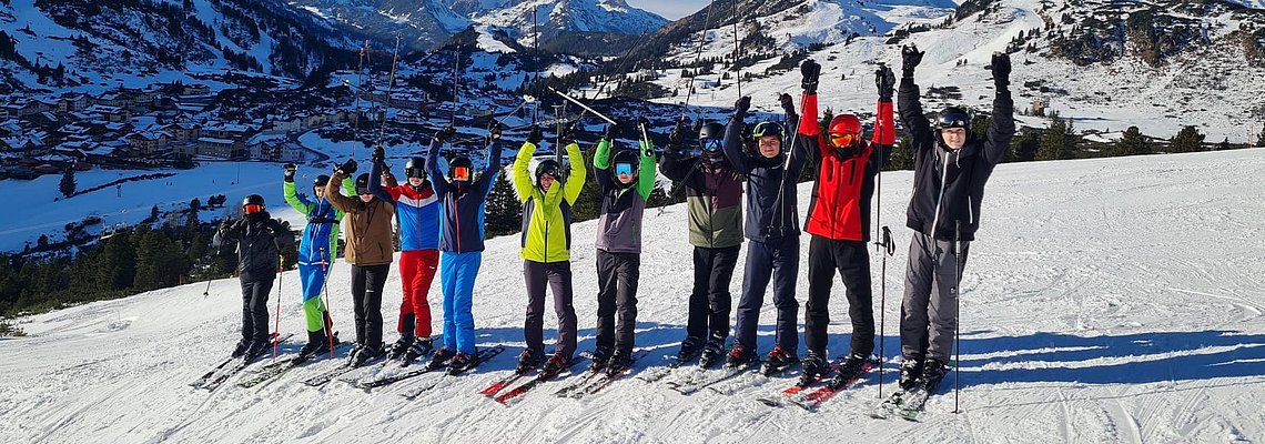 Skifahren, Lernen und Teambuilding unter besten Bedingungen in den Bergen.