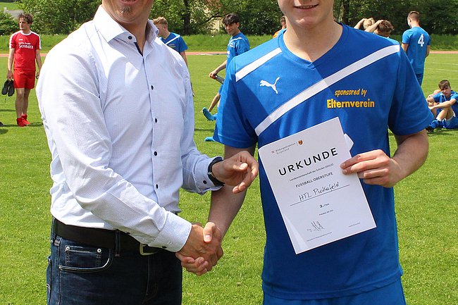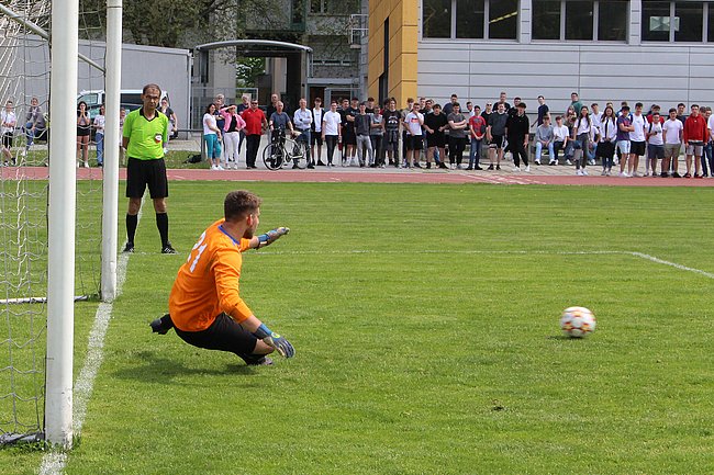 Beim diesjährigen Landesfinale der Fussball-Landesmeisterschaft der bgld. Oberstufenschulen trafen zum wiederholten Mal die Schulteams der BHAK/BHAS Stegersbach und der HTL Pinkafeld aufeinander. Bei dem bis zum letzten Elfmeter spannenden Spiel gehörte die erste Phase den Titelverteidigern des letzten Bundesbewerbs aus Stegersbach. Nach ca. 20 min gelang es den Pinkafeldern auf der heimischen Anlage mehr und mehr die Kontrolle über das Spiel zu erlangen. Trotz wenig zwingender Chancen wurde das von beiden Seiten sehr intensiv geführte Spiel keineswegs langweilig. Es gelang beiden Teams durch großen Einsatz und Kampfbereitschaft den Gegner in den meisten Fällen vom eigenen Tor fernzuhalten. So ging es mit einem torlosen 0:0 in die Halbzeitpause.