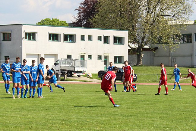 Auch in der Zweiten Halbzeit war der Wille zum Sieg bei beiden Mannschaften ungebrochen. Die von Prof. Mark Wagner und Prof. Thomas Sackl betreuten Burschen der HTL Pinkafeld kamen mit noch mehr Druck aus der Pause und gingen – nicht unverdient – mit 1:0 in Führung. Dominik Kracher schickt Fabian Kugl mit einem platzierten Steilpass links in den Strafraum, dieser vollendet mit einem schönen Schuss ins kurze Kreuzeck.