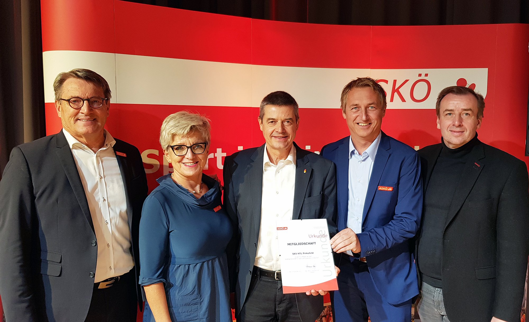 Neben der Verleihung der „ASKÖ Trophy 2022“ in mehreren Kategorien wurden auch neue Vereine in die ASKÖ-Familie aufgenommen. Für den Sport- und Kulturverein „SKV HTL Pinkafeld“ nahmen Präsident Wilfried Lercher und Vorstandsmitglied Harald Schneller die Aufnahmeurkunde aus den Händen von ASKÖ Burgenland-Präsident Alfred Kollar entgegen.