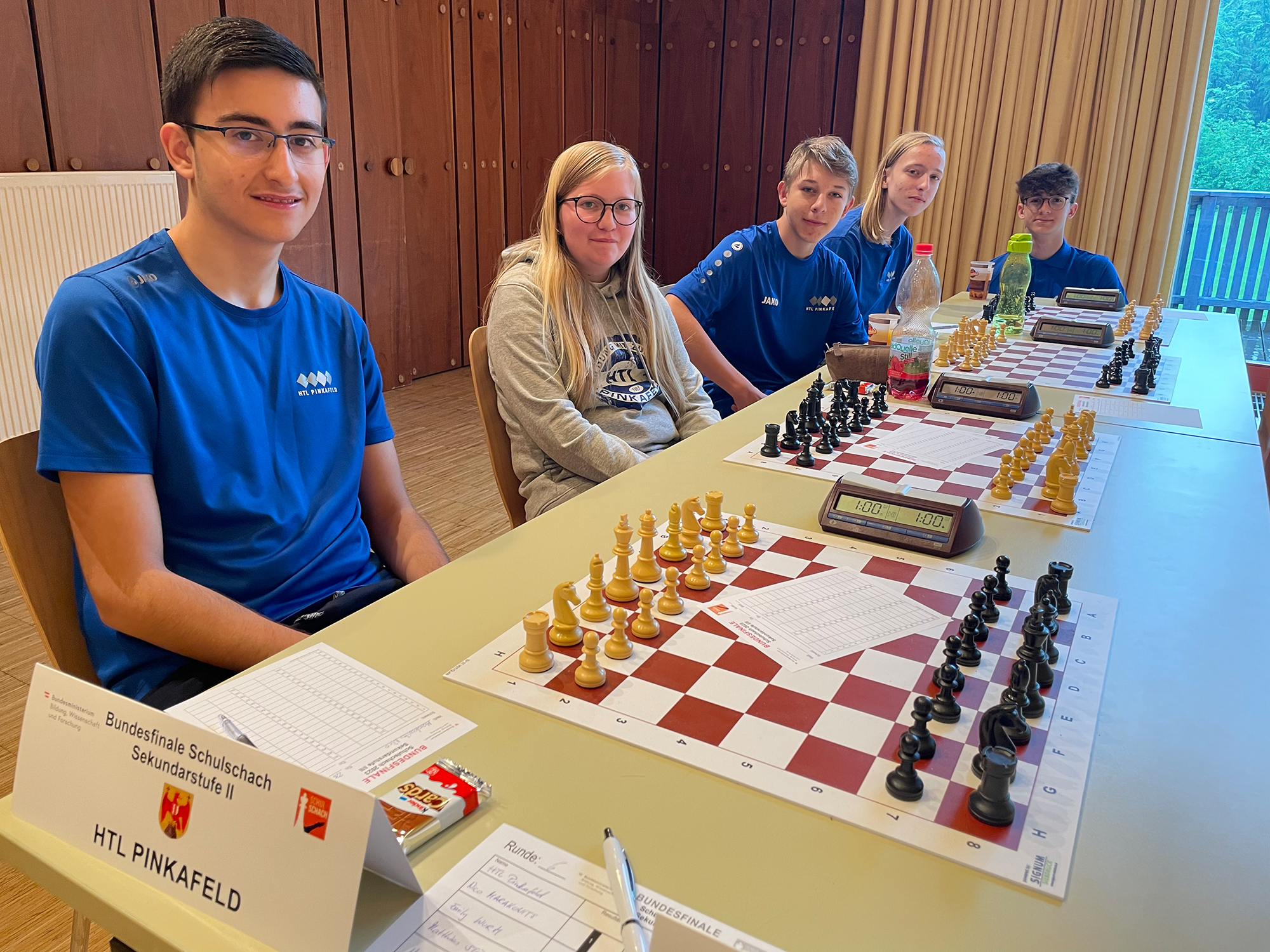 Für die HTL Pinkafeld reisten Hannes Vögl (1AHIF), Matthias Stöberl (1AHIT), Emily Wurm (1CHBT), Nico Marakovits (2AHGT), Marvin Pimperl (3AHGT) und Prof. Thomas Tiefengraber nach Kärnten, um sich mit den besten Schülerinnen und Schülern Österreichs im Schach zu messen.