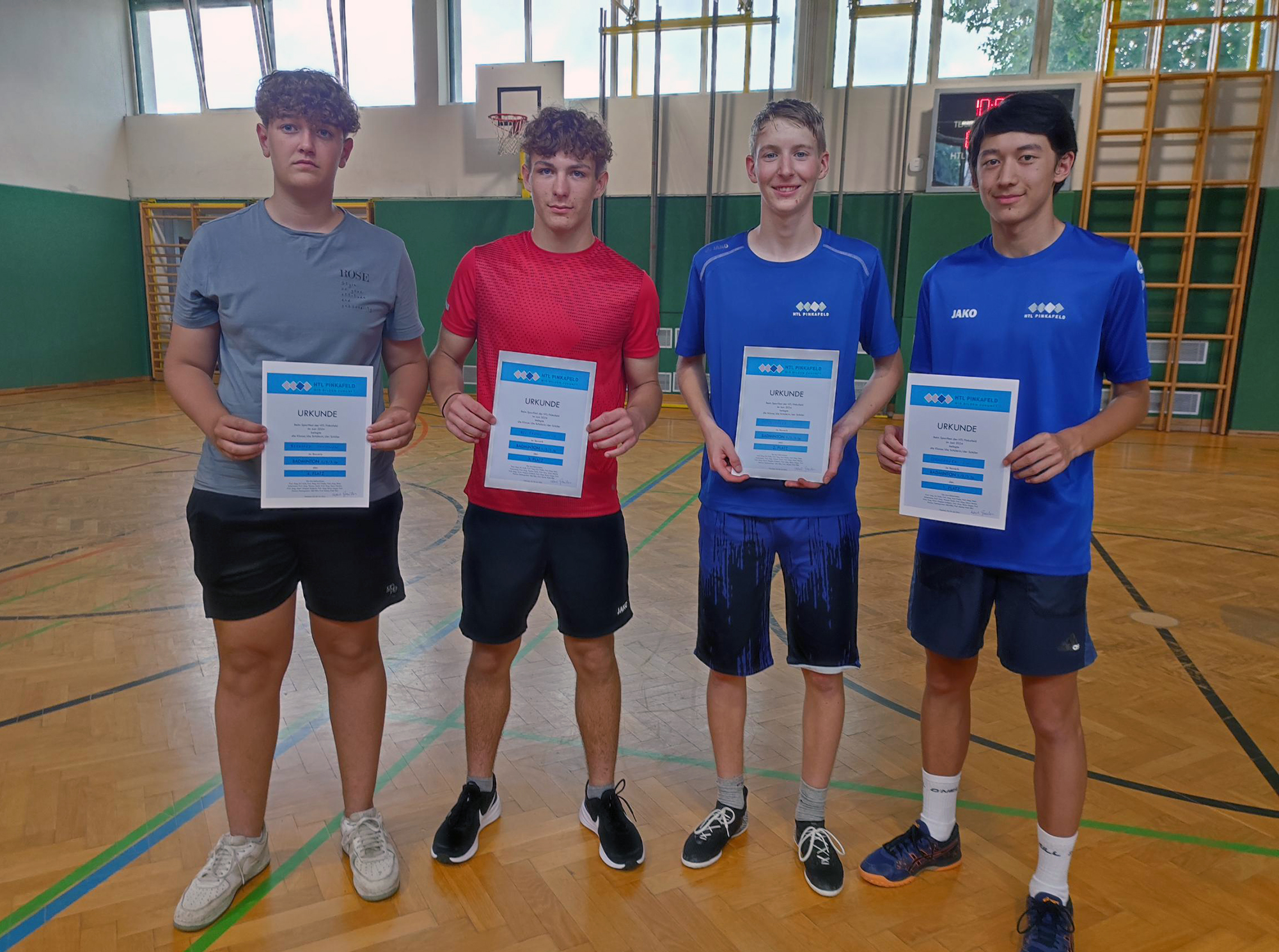 Am Badminton-Bewerb, der von Prof. Karl Preihs organisiert und durchgeführt wurde, nahmen 13 Schüler und 5 Schülerinnen teil. Auf drei Hallenplätzen wurde am zweiten Vormittag sehr fair – weil ohne Schiedsrichter – und sehr intensiv gespielt. Es wurden alle Plätze ausgespielt, damit auch die Verlierer der ersten beiden Runden mehrere Spiele absolvieren konnten.