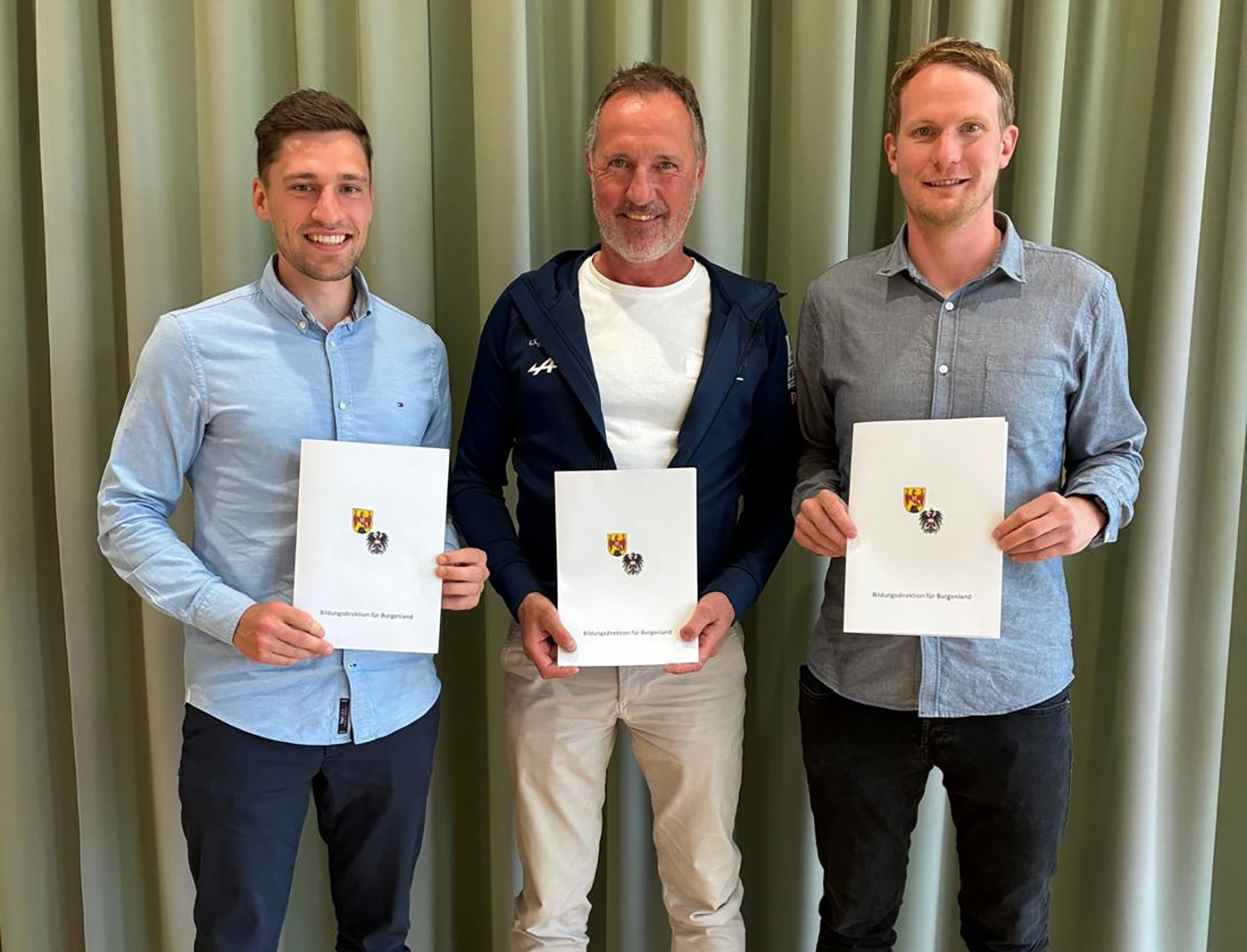 Prof. Unger bekam seine Auszeichnung für die langjährige Tätigkeit als Landesreferent Fußball Oberstufe sowie für die Organisation und Durchführung der Bundesmeisterschaften im Bewerb Fußball Oberstufe, Prof. Sackl und Prof. Tiefengraber für den zweiten Platz bei der Bundesmeisterschaft 2025 im Bewerb Fußball Oberstufe.