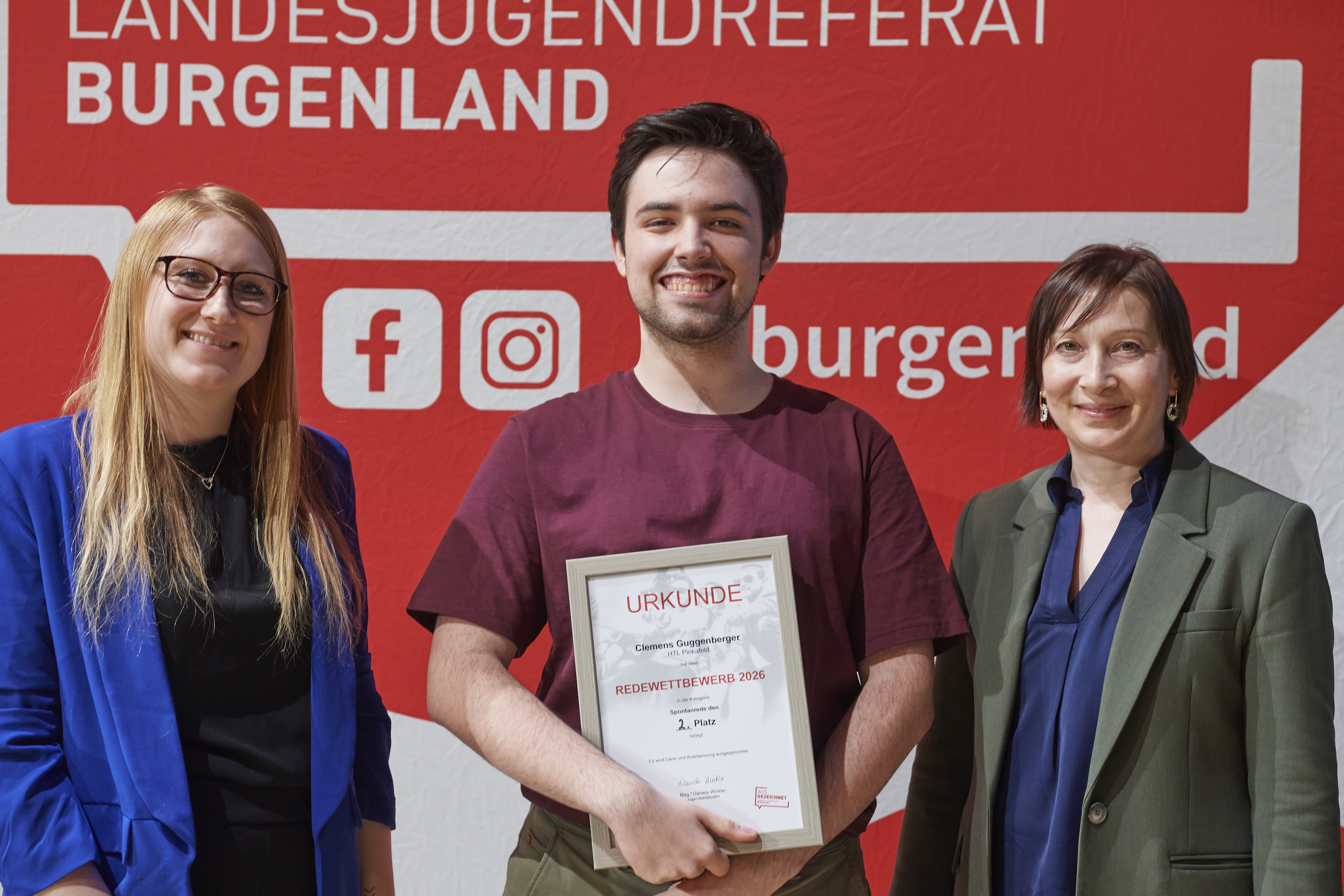 Den hervorragenden zweiten Platz in der „Königsdisziplin“ des Redewettbewerbs konnte Clemens Guggenberger, Schüler der 4BHEL, bei der Landesausscheidung in Oberschützen erringen. In der Kategorie Politik und Demokratie nahm der Schüler der Elektronik-Abteilung spontan zum Thema „Fake News als Gefahr für die Demokratie“ Stellung.