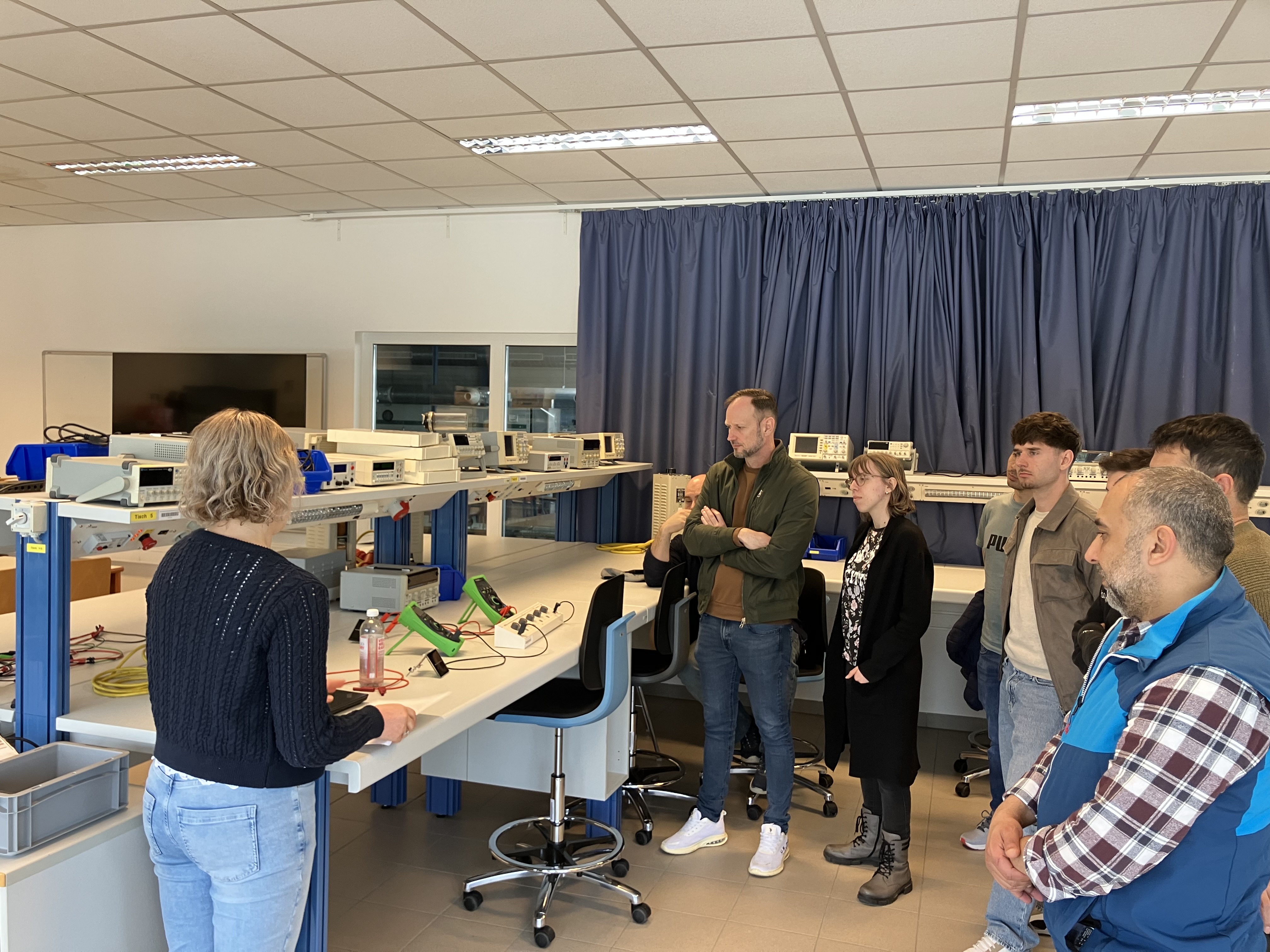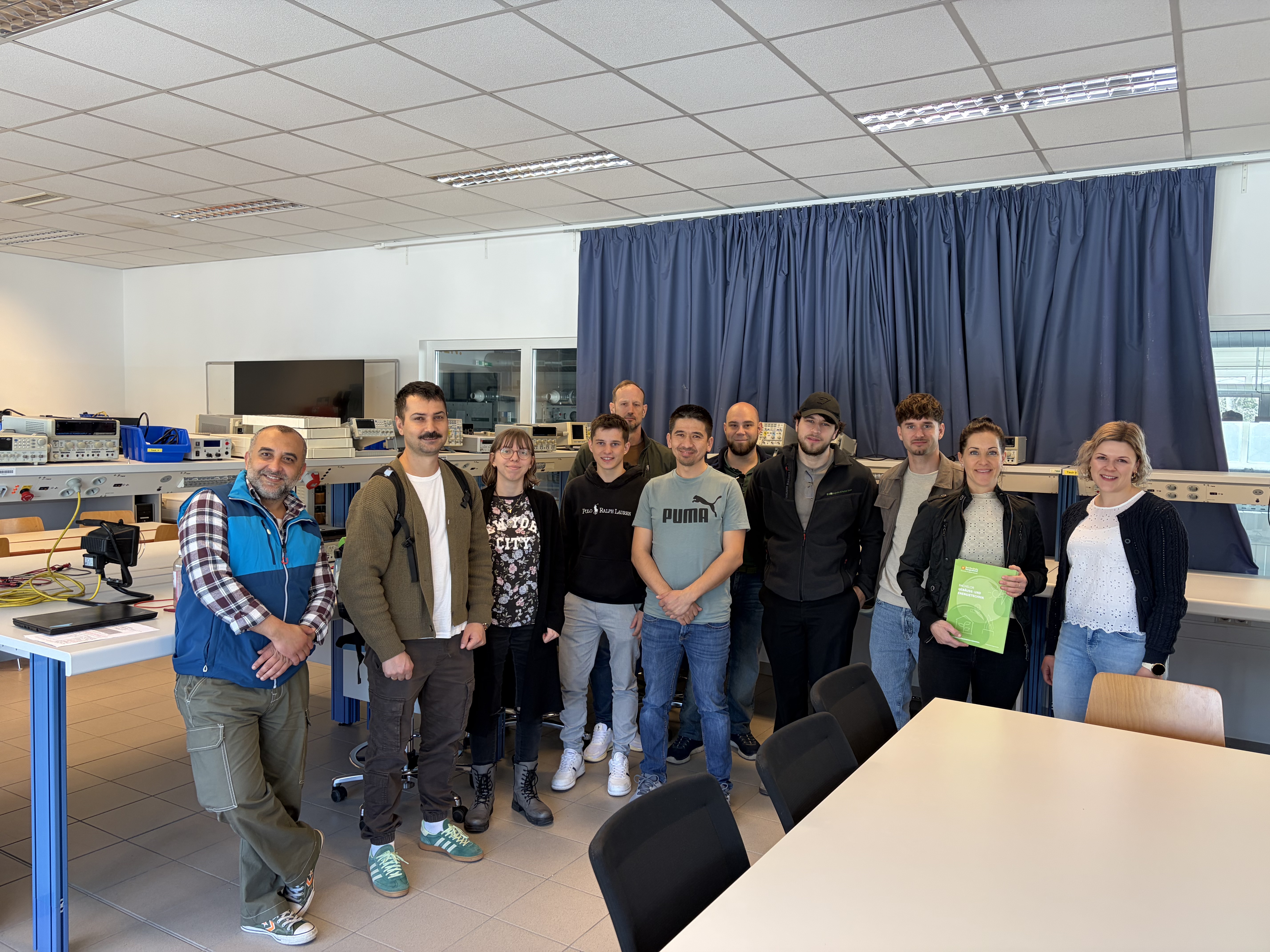Die Führung durch den Campus, geleitet vom Studiengangsleiter für BA Gebäude- und Energietechnik, Prof. (FH) DI(FH) DI Werner Stutterecker, zeigte den Schülern Einblicke in Materie der Gebäudetechnik, sowie den direkten Zusammenhang von den theoretisch erworbenen Kenntnissen aus den Vorlesungen in die Praxis. Im Zuge dessen durften die Studierenden an einer Übung zum Thema „Photovoltaik“ teilnehmen. Dabei wurden Kennlinien von PV-Modulen gemessen und ausgewertet, sowie deren elektrische Leistungen bestimmt. Frau DIin Kathrin Schuller, Bsc. stand als Lehrveranstaltungsleiterin zur Seite und leitete durch den Versuchsaufbau.